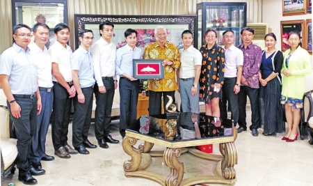【本报讯】(记者刘斯协)8月22日下午,广东陆加壹集团及其旗下壹嘉集团、云嘉集团、陆嘉集团高层,广东恒健投资集团投资部总经理刘山等专程到本报总部大楼拜会本报董事长熊德龙,就拟联袂在印尼引入“云嘉模式”进行了探讨。熊德龙认为,这样的合作,是实实在在地践行“一带一路”,必将为两国经济社会发展作贡献。他表示,将拿出现有公寓、土地等适合上述项目发展的熊氏集团、国际日报报业集团的资源,结合广东企业的先进理念、独特优势、良好模式,强强联手,在印尼大力发展服务型地产及旅游地产。